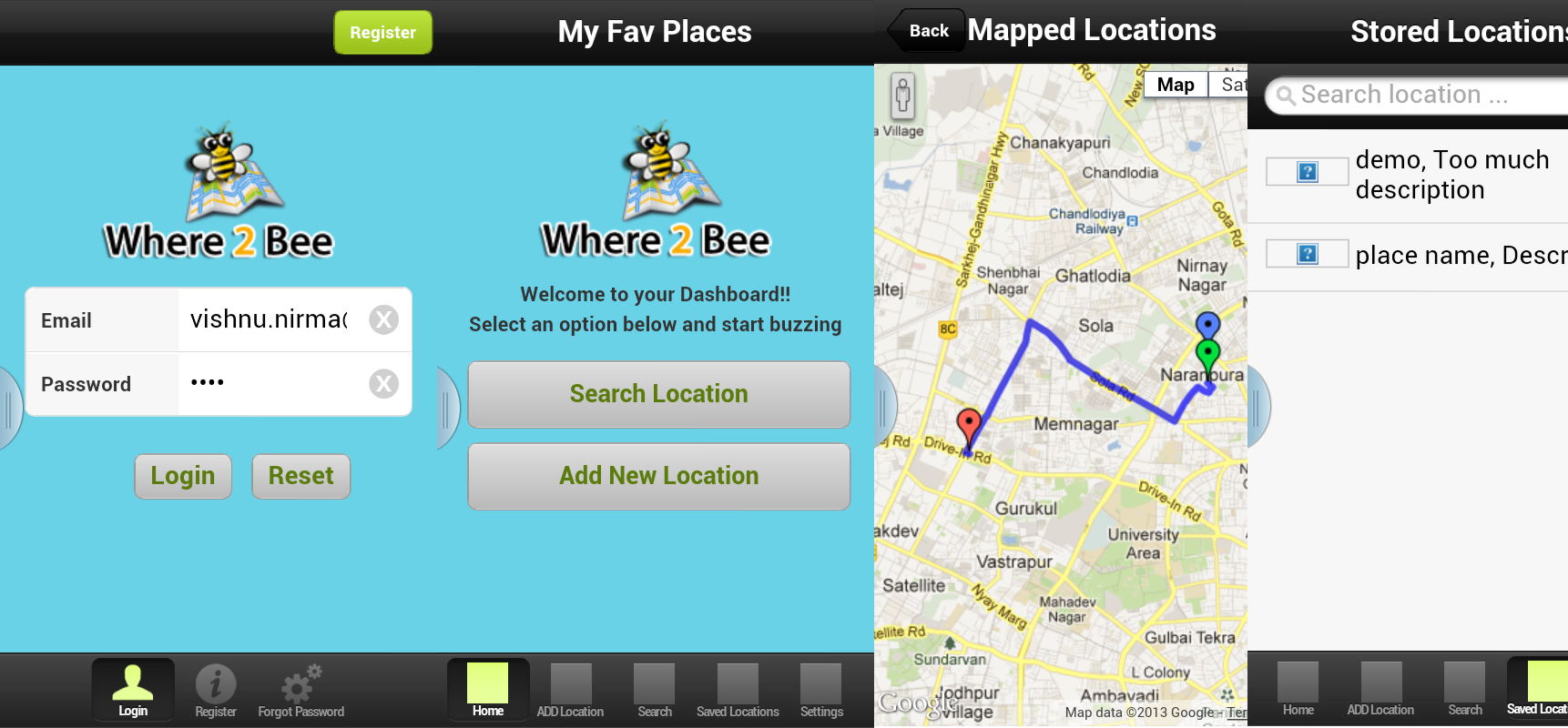 Where2Bee App is developed inCross Platform Framework, And it is useful to find the location on the map for specific category with it's description and User can also add the Location of his choice and save it.