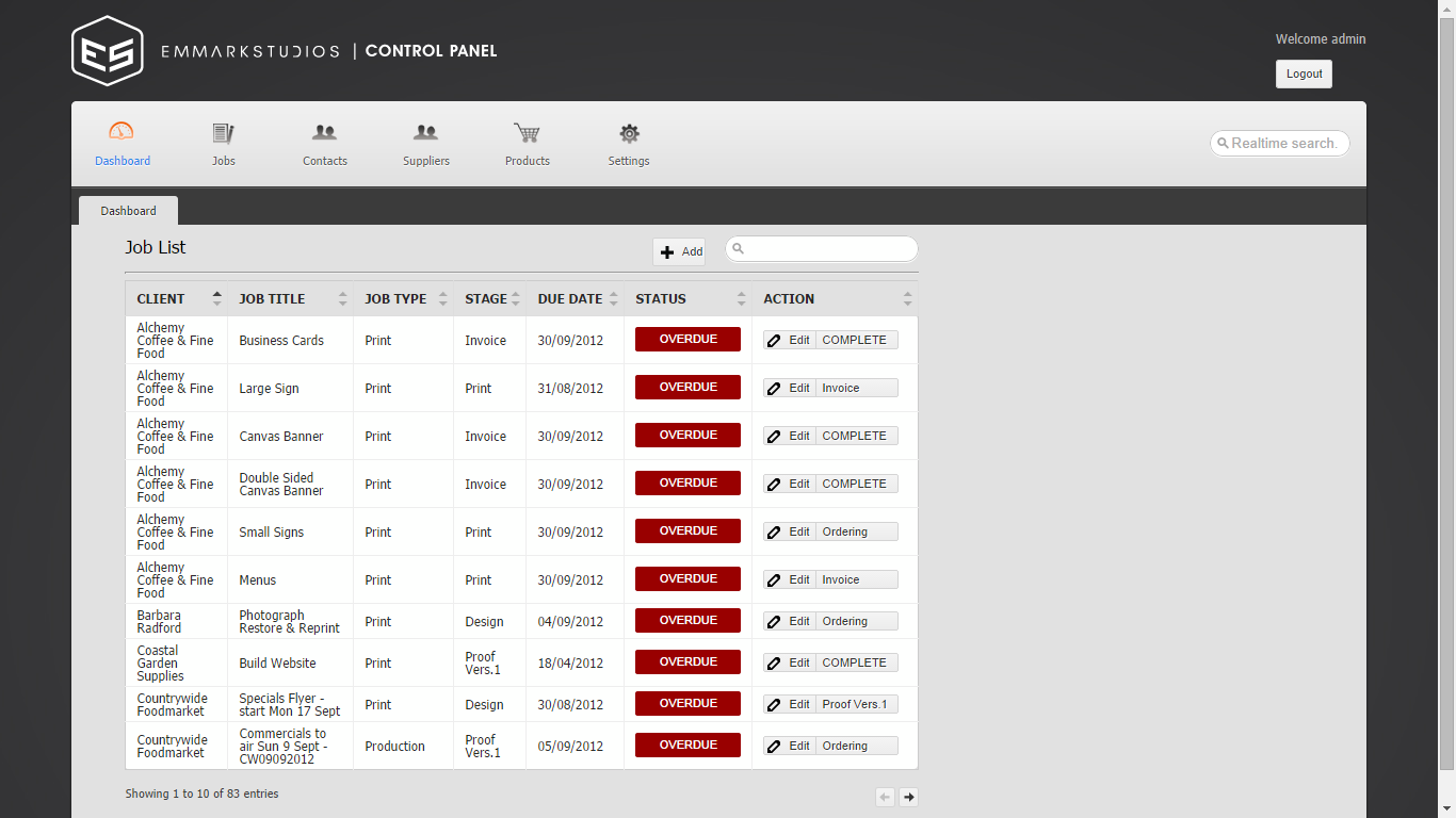Job Scheduling System maintains the Client's Details,his Jobs & their customers. It is maintaining the Supplier's Details with supplied Products. And provide the upload options for thousand of products supplied by different Suppliers. It is also maintain the jobs details like, which job is assigned to which worker and when it is going to be finished. The System is also able to print the Job Ticket.